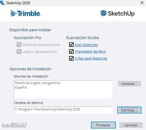 SketchUp Pro 2026 es un software desarrollado por Trimble Inc., y todos los derechos pertenecen a su respectivo propietario.